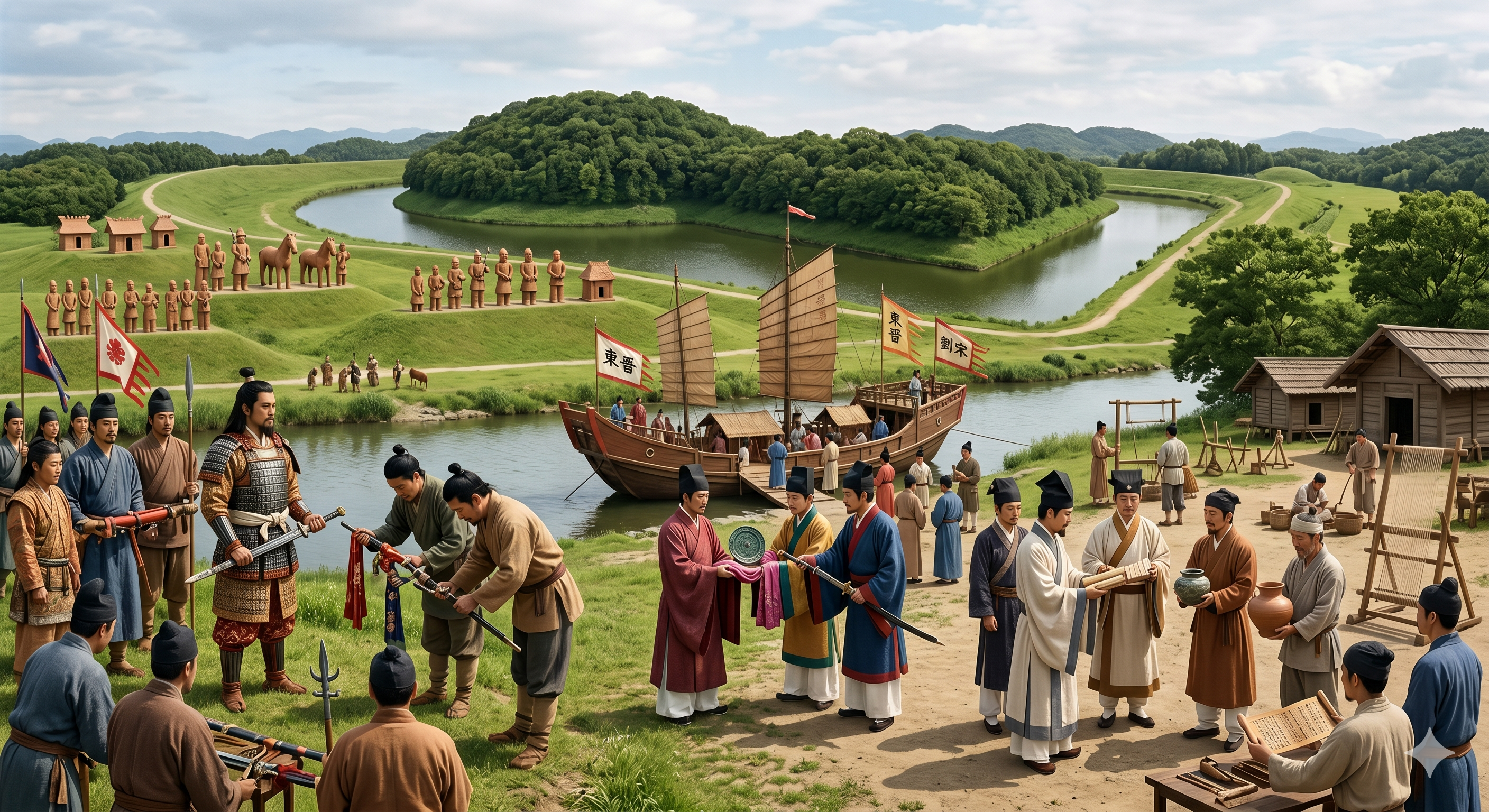 - 西元317年—420年:「東晉」:政治與經濟中心向南退守至長江流域