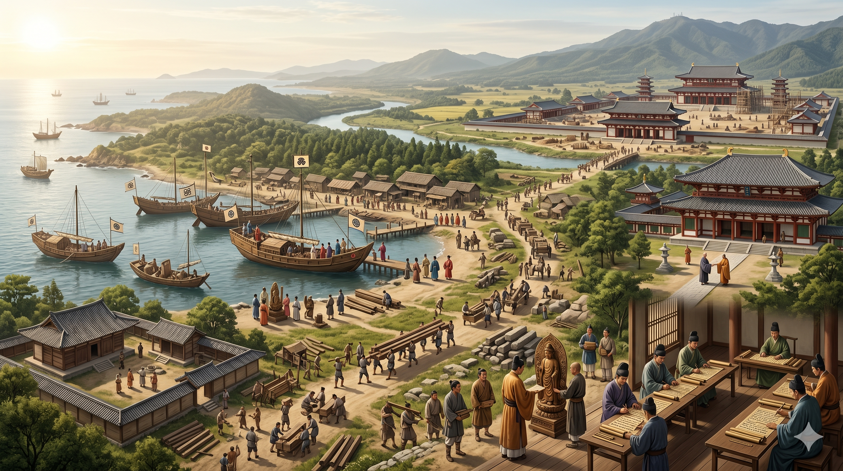- 西元701年:文武天皇在位期間,頒布「大寶律令」作為國家基本法,整合現有的法律,實行「律令制度」。